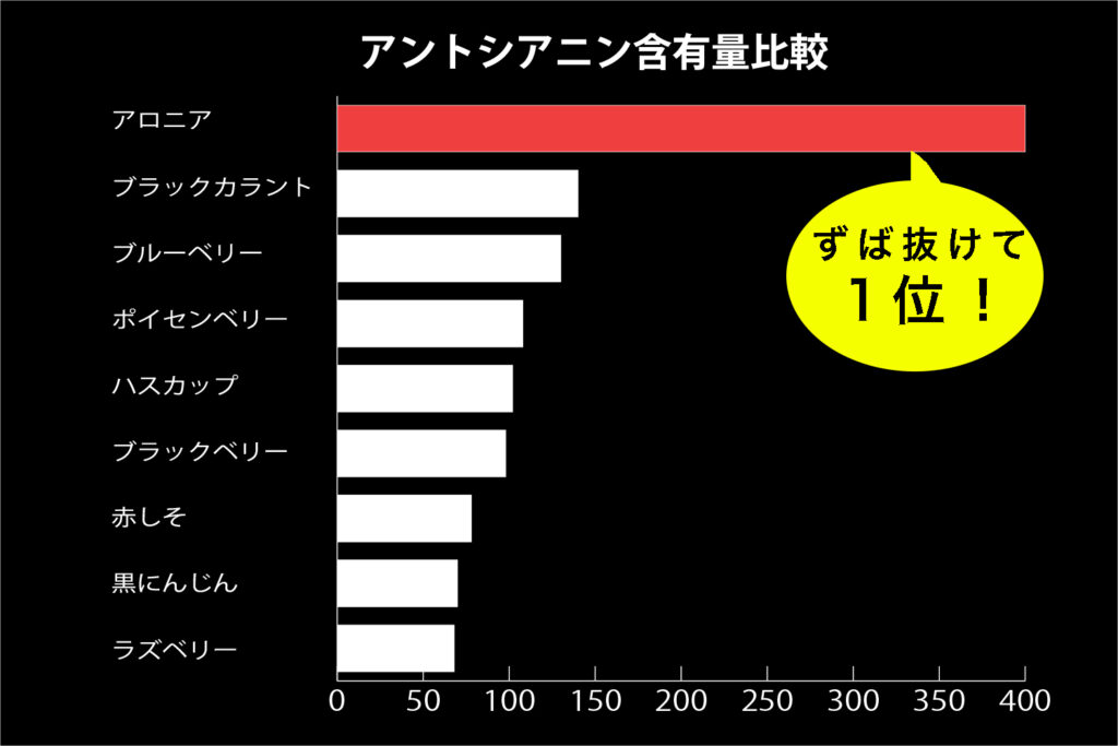 中でもアントシアニンは群を抜きブルーベリーの3倍含んでいます。
